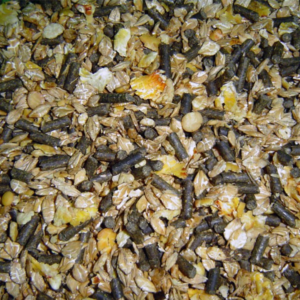 Particulièrement appétente & nutritive, la Caroube (gousse de la famille des légumineuses) peut sans inconvénient être utilisée en la distribuant broyée & mélangée à d’autres aliments afin de ne pas risquer d’accident d’étranglement. Elle entre dans la composition de nombreux aliments élaborés (granulés & floconnés). Vertus: