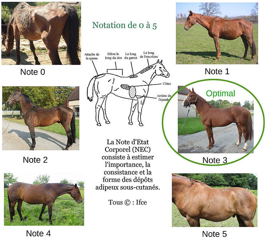 => L'alimentation de la poulinière en gestation: Lorsque que l’on possède des chevaux destinés à l’élevage, l’alimentation des juments en gestation est primordiale & ne doit pas être négligée. Durant les 11 mois de gestation chez la jument, son alimentation doit être adaptée afin de répondre au mieux à ses besoins nutritionnels qui évoluent chaque jour. Effectivement, le régime alimentaire de votre jument en gestation doit être complet tout en conservant ses habitudes pour éviter tout stress. La gestation chez la jument dure 11 mois, qui sont divisés en plusieurs étapes. De la première semaine à deux mois, l’embryon devient un fœtus. Du deuxième au sixième mois, la croissance commence avec le développement de tous les organes du poulain. A partir du septième mois, c’est l’étape de la fin de gestation, le poulain entame la dernière partie de sa croissance pour passer de 5 à 50 kilos à la mise bas. De ce fait, la prise de poids de la jument est importante sur les derniers mois de la gestation & représente environ 6 à 8% de son poids normal. Les besoins nutritionnels de la jument vont donc considérablement augmenter lors des trois derniers mois. Il est donc nécessaire de lui apporter tout ce dont elle a besoin avec une alimentation adaptée. La gestation est très préoccupante dans le cycle de reproduction de la jument. La jument gestante doit pouliner un poulain en bonne santé, au bon mois de l’année & adapté à l’objectif de production: course, sport, loisir ou trait. La jument doit également être en bon état à la mise bas pour être saillie dans le mois suivant le poulinage. Adapter l’alimentation de la poulinière en gestation: Lors de la gestation de la jument, son état nutritionnel est un élément essentiel pour le développement optimal du fœtus, dès la conception & qui se poursuit jusqu’au sevrage avec la production laitière pendant la lactation. Les besoins nutritionnels & le niveau d’ingestion des aliments sont dépendants au niveau de la capacité d’ingestion, des réserves corporelles de la jument pendant la gestation & du moment dans le cycle de reproduction. La note d'état corporel: Sur le terrain, nous rencontrons fréquemment deux erreurs: la jument gestante en surnutrition & la jument en lactation en sous-nutrition. Afin de minimiser ce type d’erreur, le suivi de la note d’état corporel peut être un bon indicateur. La note d’état corporel d’un cheval permet d’estimer ses réserves de graisses & permet ainsi de déterminer si sa ration alimentaire lui correspond ou non. L’estimation de la note d’état corporel d’un cheval se fait par palpation sur 6 endroits différents. Le but étant de noter ces derniers de 1 à 5. La note minimale correspondant à un état de sous-nutrition & la note maximale à un état de surnutrition. Ensuite, il suffit de faire la moyenne de ces points. Une note d’état corporel en fin gestation & en début de lactation ne doit jamais être excessive, avec une note optimale de 3,5. La note peut varier entre 3,0 à 3,5 au cours du cycle. La ration alimentaire doit être adaptée aux stades du cycle : les 2/3 de la gestation, les 3 derniers mois de la gestation & la lactation. Pendant les 2/3 de la gestation, le fœtus croît doucement & donc les besoins alimentaires de la jument gestante, non allaitante, ne sont pas si différents que ceux d’un cheval adulte à l’entretien. Pendant cette période, un fourrage ou du pâturage de bonne qualité est normalement assez pour couvrir les besoins des juments & ainsi constituer son alimentation. Cependant, quand la disponibilité ou la qualité des pâturages est limitée, une supplémentation avec des concentrés peut être nécessaire afin de maintenir l’état corporel de la jument. Cette période est le moment où, pour les juments avec une note d’état corporel moindre que l’idéale, vous pouvez améliorer leur condition avec des apports d’énergie pendant que les besoins sont bas. La particularité de la fin de gestation de la poulinière: Pendant les 3 derniers mois de la gestation, la croissance du fœtus augmente de façon exponentielle. La croissance fœtale est assez faible jusqu’au 7ième mois de gestation, avec jusqu’à 80% du poids final du poulain pris pendant les 4 derniers mois. Les besoins de la jument augmentent alors en énergie, en protéine, en calcium, en phosphore & en oligo-éléments. Avec un fourrage de très bonne qualité comme la luzerne ou légumineuse, la supplémentation d’aliments concentrés n’est pas toujours nécessaire, en fonction de votre jument. Cependant votre jument peut ne pas être en mesure d’ingérer suffisamment de foin pour couvrir ses besoins en raison de la diminution de sa capacité d’ingestion. Effectivement, la capacité d’ingestion diminue en moyenne par 20% entre la semaine 5 & 1 avant le poulinage. De ce fait, un apport optimal en nutriments pour la jument est nécessaire au cours du dernier trimestre de la gestation afin de soutenir la phase de croissance fœtale la plus rapide & de fournir les oligo-éléments que le poulain stockera dans son foie pour une utilisation au cours des premiers mois de sa vie. Conclusion: Vous l’aurez compris, l’alimentation de la poulinière en gestation peut s’avérer très délicate en fonction des différents besoins qu’elle peut exprimer. Il est nécessaire d’y accorder une importance particulière pour ne pas mettre en danger la poulinière & le futur poulain. D’ailleurs, un déséquilibre de Calcium & Phosphore associé à une alimentation inadaptée (insuffisante ou excessive) peut provoquer des troubles osseux chez le poulain. |