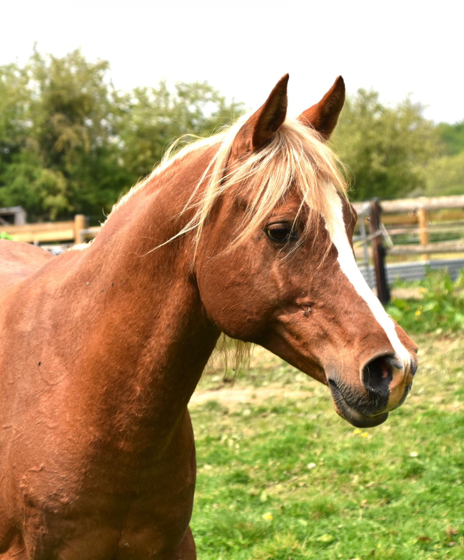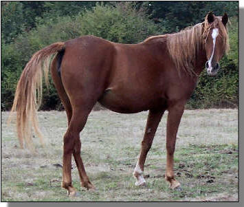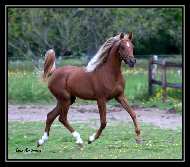 Jument alezane crins lavés, d'1m55 environ & née le 30 avril 2012. Née à l'élevage "Orient Arabians" (85), elle est malheureusement décédé à l'âge d'1 an suite à la "Rhodococcose"*. Mère: Malheeqa Al Sahra* (Arabe - IRE 83), fille de Ragheeb** (Arabe) & Kar Reyhan (Arabe) par Nijamin (Arabe). |